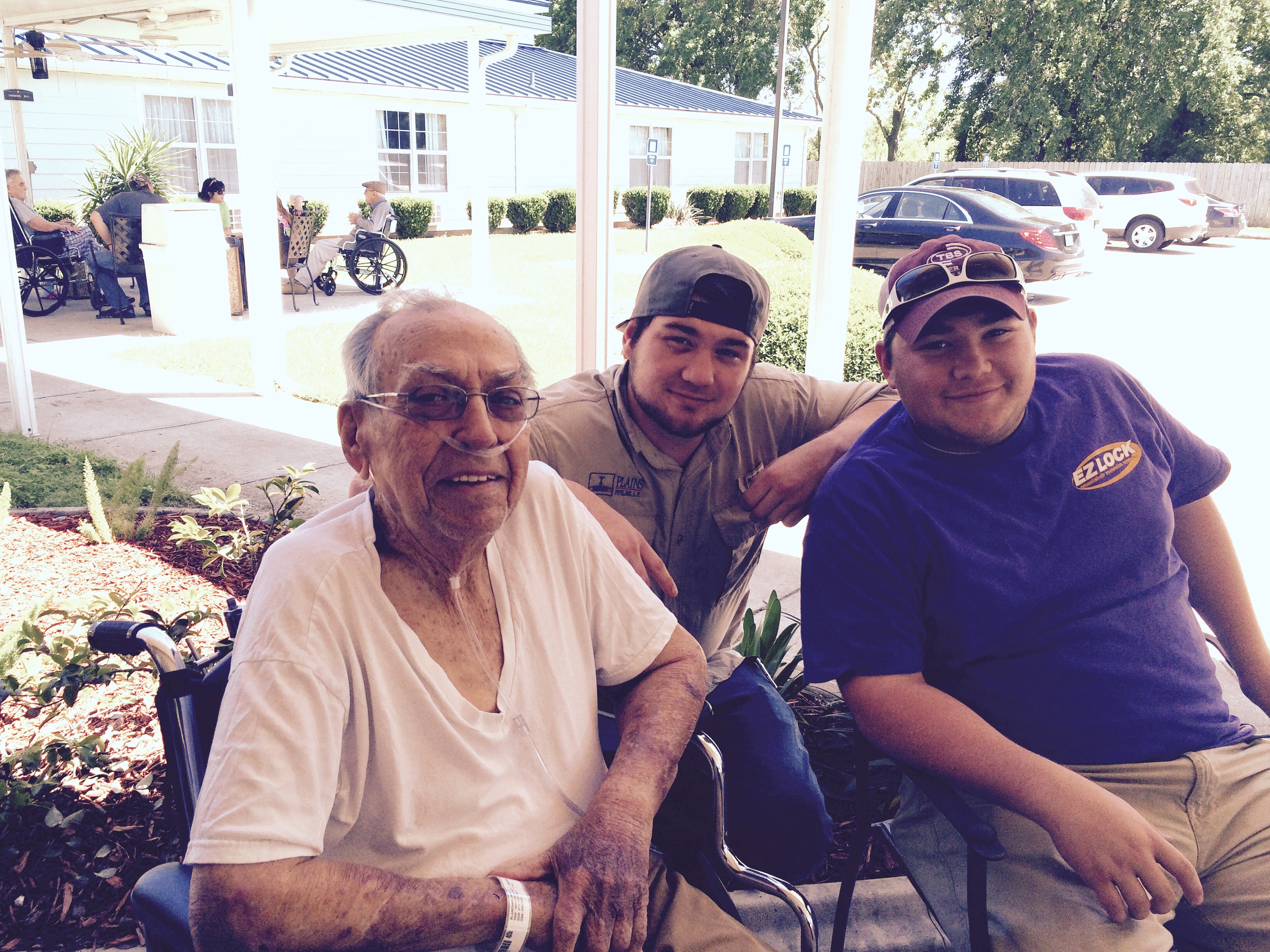 In the end, we decided to bring my daddy home to my brother’s house for home health care. He was very unhappy at River Bend, mostly because he was out of his element and partially saddened by what he was seeing there. He is very weak and his prognosis is not good, but he is happy to be home in familiar surroundings, with my brother and his gentle giant of a chocolate lab.