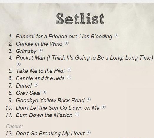 I did get to see Elton John one other time. My parents gave my husband and I tickets to see him in concert for our anniversary in 2001. It was his “Face to Face” tour with Billy Joel.
