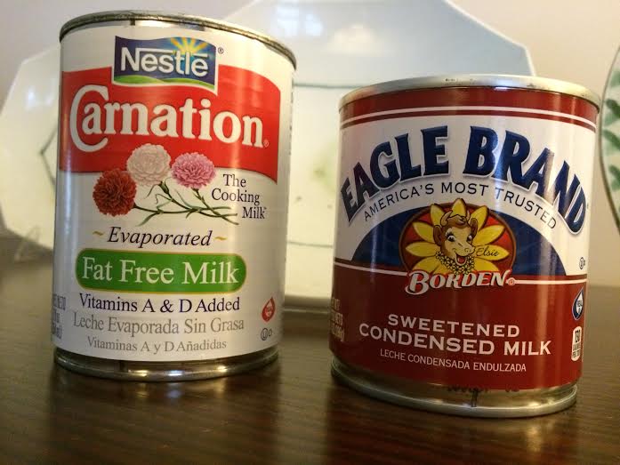 I grew up seeing a can of sweetened condensed milk sitting, opened with its metal lid hinged upward, on the counter next to my Aunt Helen’s coffee pot. She liked a spoon of it in her coffee, instead of sugar and regular milk, to create the perfect café au lait. I also have strong memories of seeing my cousin Penny eating the condensed milk out of the can with a spoon. We didn’t use it at home; my parents drank their coffee black with sugar, until much later in life when my dad started adding a bit of milk from the fridge to his coffee. And, since my mother was not much of a baker, we didn’t regularly have it around for making desserts.
