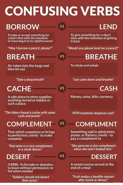 Good writing is writing that is clear and concise. Not all verbs are interchangeable. Check out this graphic that shows some of the most commonly confused verbs and how to use them correctly.