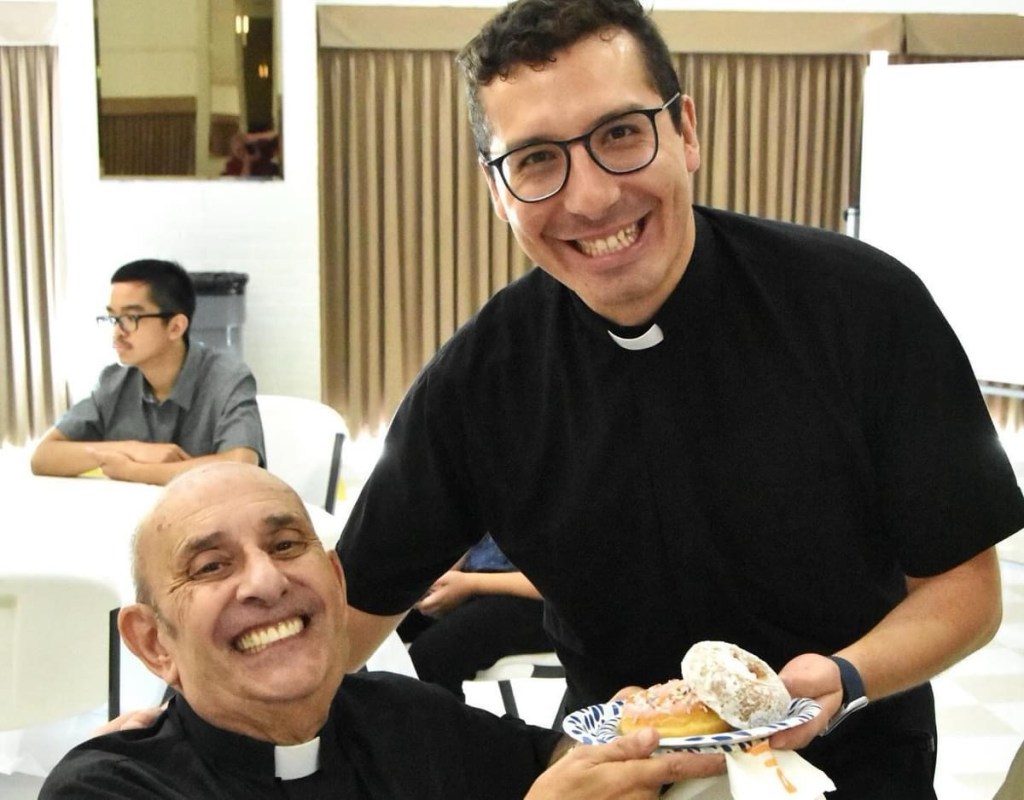 Our other parochial vicar is Fr. Francisco (Kiko) Rodriguez, who—while a native of Newark, New Jersey—was born to missionary parents who came to the United States from their native Granada, Spain. He is quiet, but his homilies are bold and powerful. It is in the celebration of the Mass where he really shines. He and Fr. Juan Pablo are good friends, and they are often seen together about the campus.
